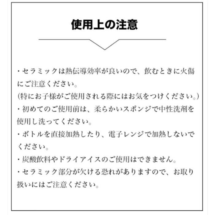 ・セラミックは熱伝導率が良いので、飲むときに火傷にご注意ください。(特にお子様がご使用される際にはお気を付けください。)