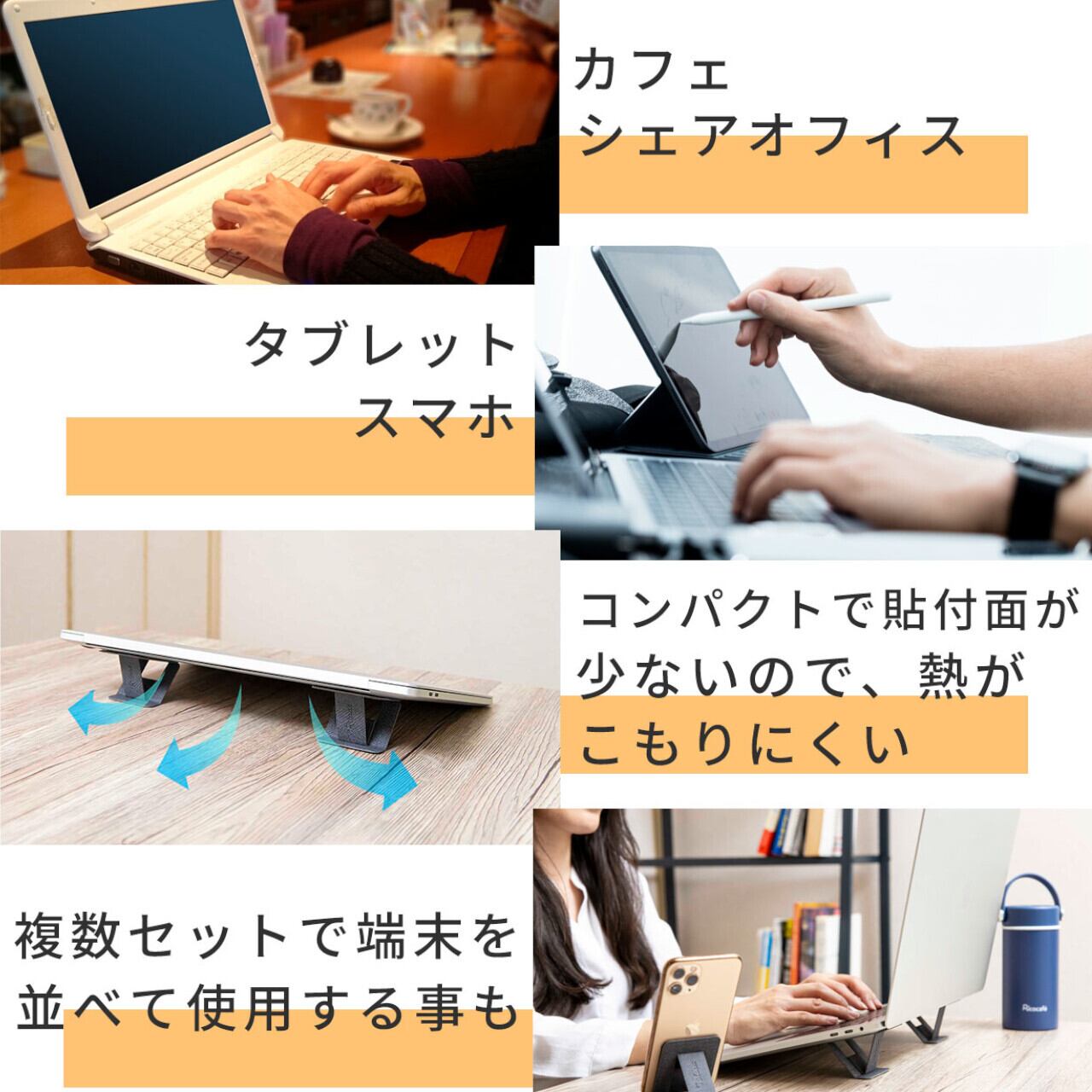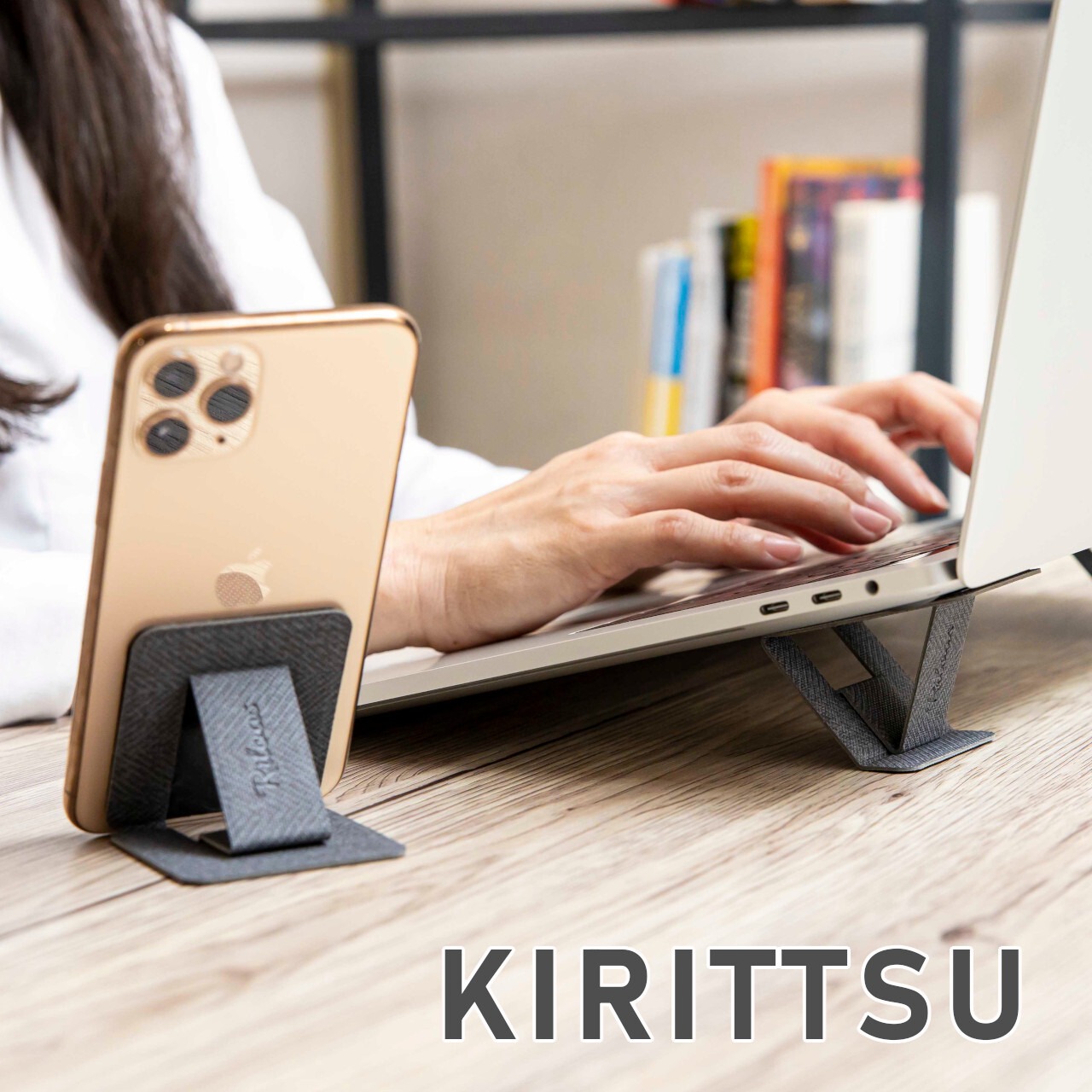 貼って剥がせる【KIRITTSU】なら、見た目重視で仕事をする時は、ケースに収納しておき、1人で黙々と作業する時はスタンドを付ける。